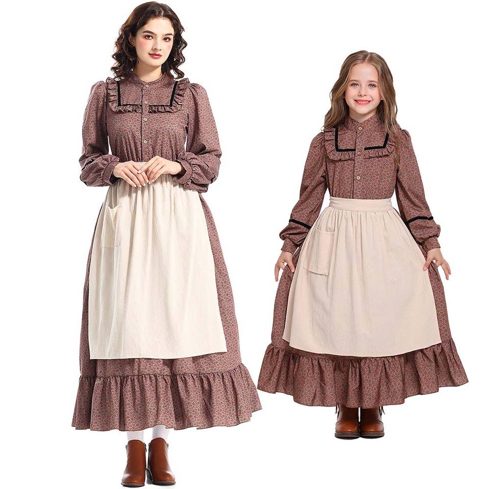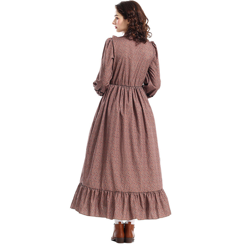 ชุดเดรสลายดอกไม้สำหรับผู้ใหญ่ RKHC-007ฮาโลวีนลายทุ่งหญ้าในยุคกลางสีน้ำตาล