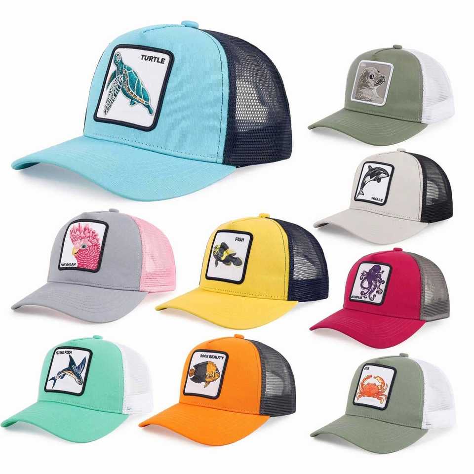 หมวกแก๊ปปักลายสำหรับเด็กและผู้ใหญ่ 5 แผง ตาข่าย หมวกเบสบอลลายสัตว์ หมวกแก๊ปแบบ Trucker ปรับแต่งได้