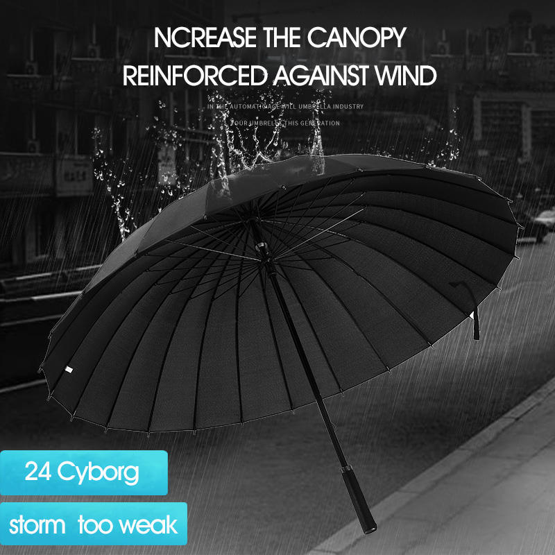 ร่มสำหรับผู้ใหญ่ขนาดใหญ่สีดำกันลมกันฝนพิมพ์ลาย UV ทนทานเคลือบโลโก้แบบกำหนดเอง-ธุรกิจที่ยอดเยี่ยม