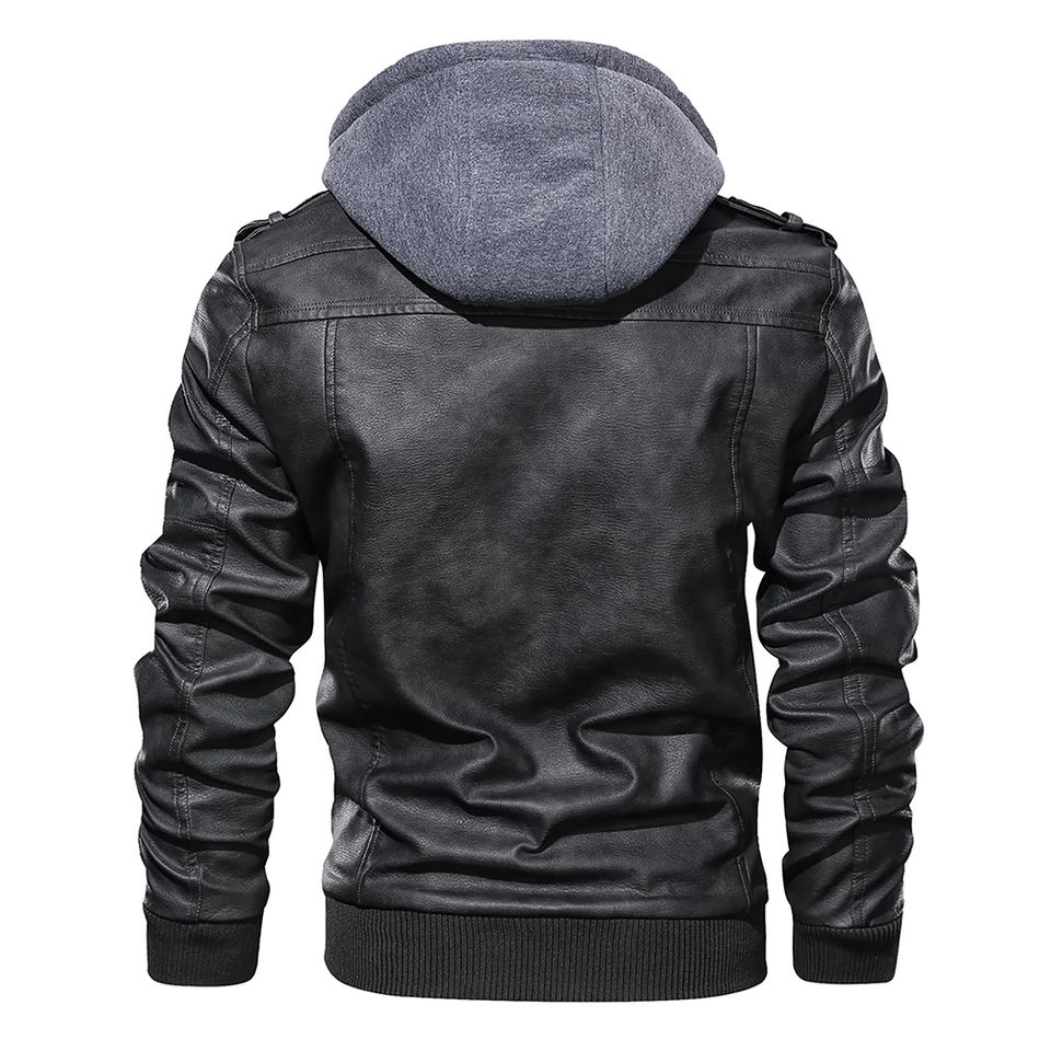 เสื้อแจ็คเก็ตหนังวัวแท้สำหรับผู้ชาย แขนเสื้อยืดหยุ่น ทรงปกติ กันลม พร้อมฮู้ดปรับได้