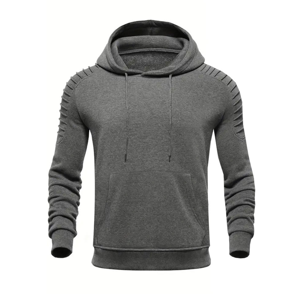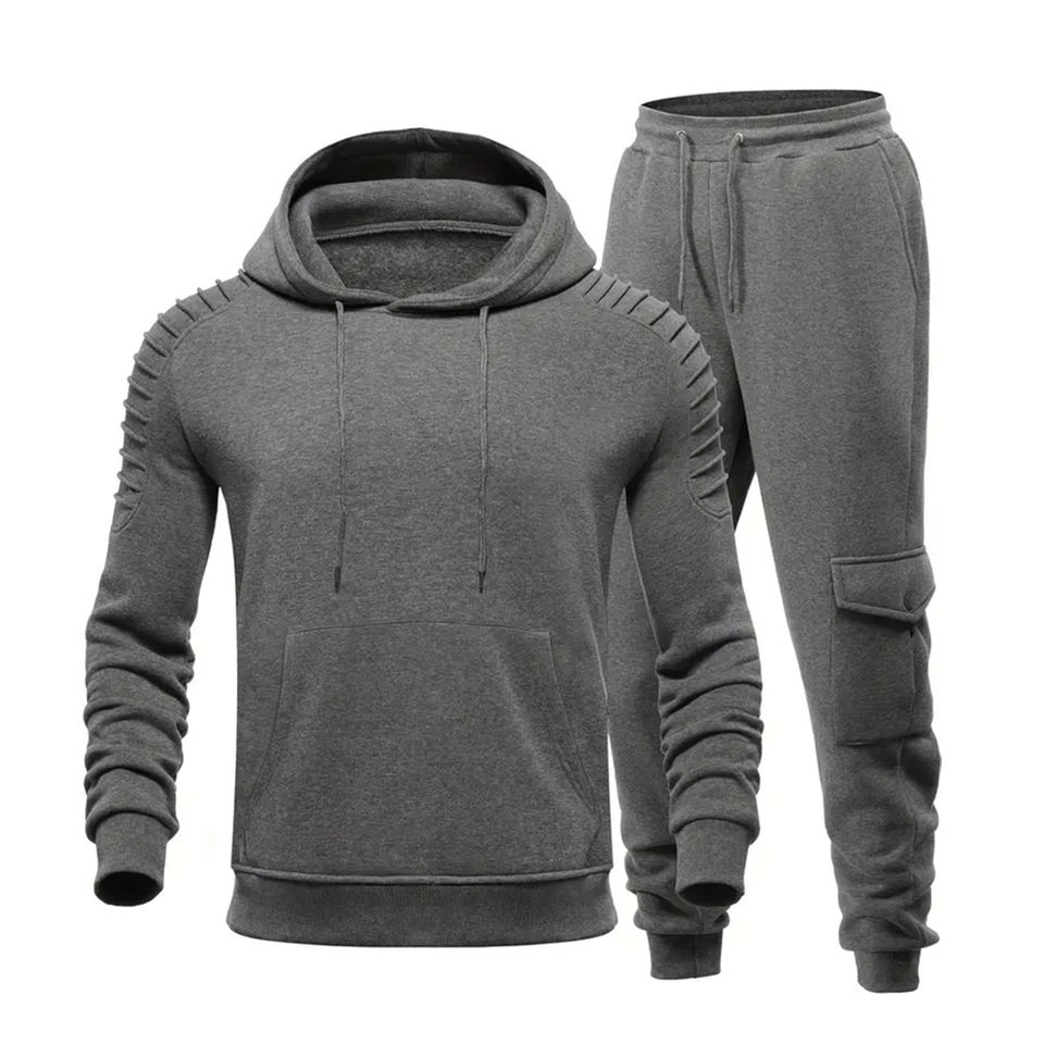 ชุดวอร์มผู้ชายแบบมีฮู้ดสำหรับฤดูหนาว ผ้าแห้งเร็ว ระบายอากาศดี แขนสั้น ทรงโอเวอร์ไซส์ มีกระเป๋าข้าง ดีไซน์ 2 in 1