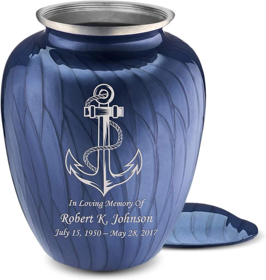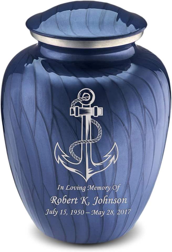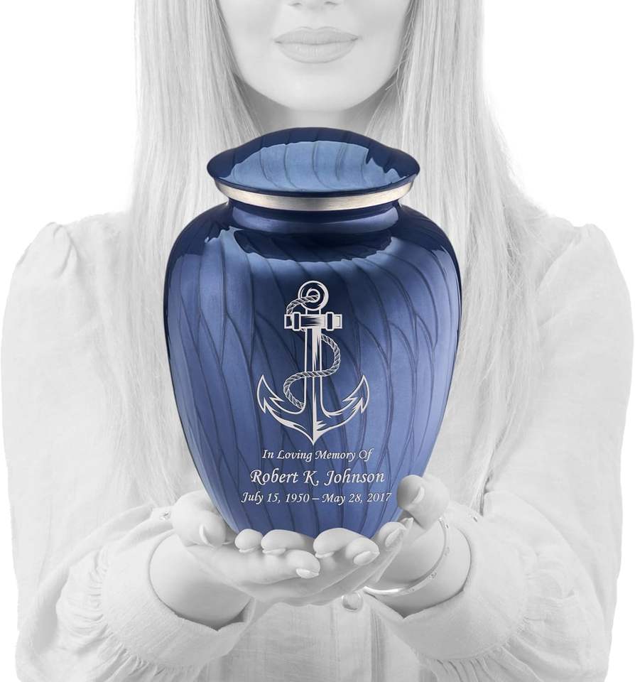 โกศบรรจุอัฐิสำหรับผู้ใหญ่แบบสั่งทำพิเศษ รูปทรงสมอเรือ สีน้ำเงินโคบอลต์มุก ขนาดใหญ่ สำหรับผู้ชายและผู้หญิง รับน้ำหนักได้ถึง 200 ปอนด์