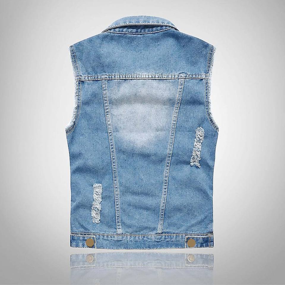 เสื้อกั๊กยีนส์สำหรับผู้ชายไซส์ใหญ่ใหม่ดีไซน์ใหม่เสื้อยีนส์แบบซักได้เสื้อกั๊กกางเกงยีนส์ระบายอากาศได้ดี