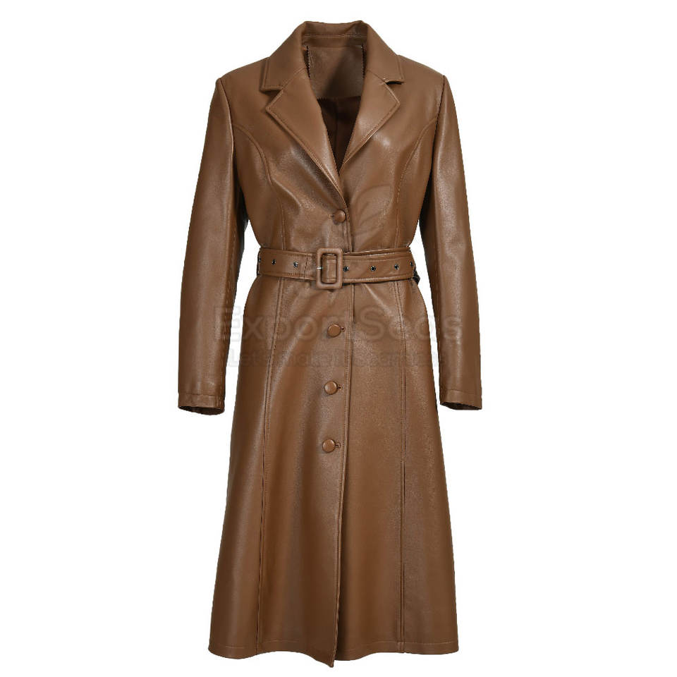 ชื่อผลิตภัณฑ์:เสื้อเทรนช์โค้ทหนังผู้หญิง