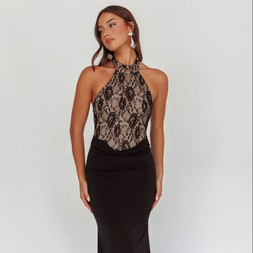 ชุดราตรียาวถึงพื้นผ้าชีฟองสแปนเด็กซ์แขนกุดสำหรับผู้ใหญ่ระบายอากาศป้องกันไฟฟ้าสถิตย์สำหรับงานปาร์ตี้คลับกลางคืน