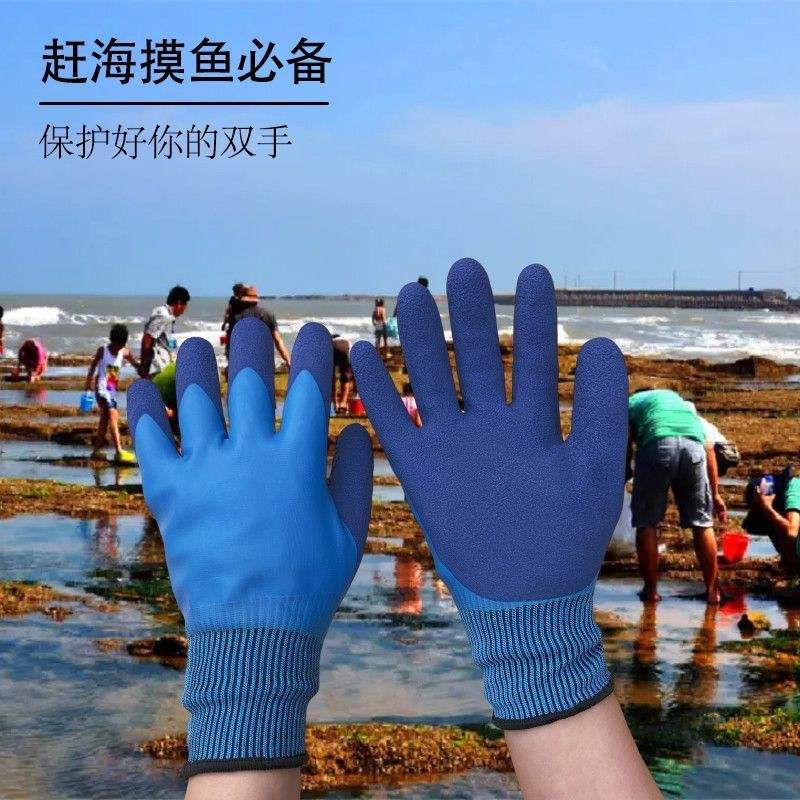 ถุงมือยางกันน้ำสำหรับผู้ใหญ่ สำหรับตกปลา จับปู งานกลางแจ้ง ป้องกันการลื่น ใช้ได้ทั้งชายและหญิง แบบสวม