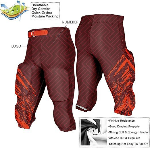 กางเกงฟุตบอลอเมริกันสำหรับผู้ใหญ่ผู้ชายกางเกงฟุตบอลแบบไม่ยับ