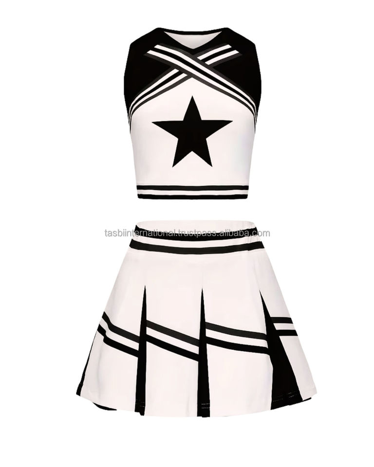 ชุดยูนิฟอร์มเชียร์ลีดเดอร์สำหรับผู้ใหญ่ พิมพ์ลายแบบถ่ายโอนความร้อน ระบายเหงื่อ แห้งเร็ว ผลิตจากโพลีเอสเตอร์ 100% ออกแบบและสีตามสั่ง