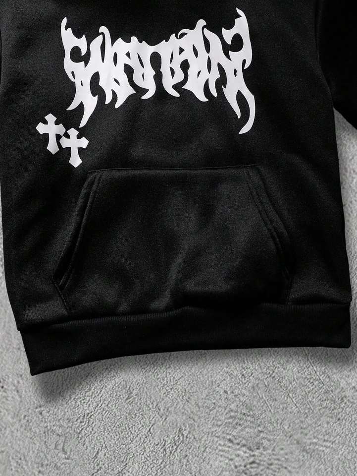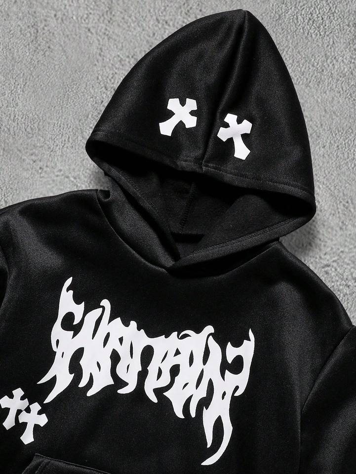 ชุดเสื้อฮู้ดพิมพ์ลายกราฟฟิตีสไตล์โกธิคสำหรับผู้ใหญ่แบบ unisex สำหรับฤดูหนาว พร้อมกางเกงขายาวทรงตรง มีกระเป๋าข้าง ซิปผ่าหน้า น้ำหนักเบา