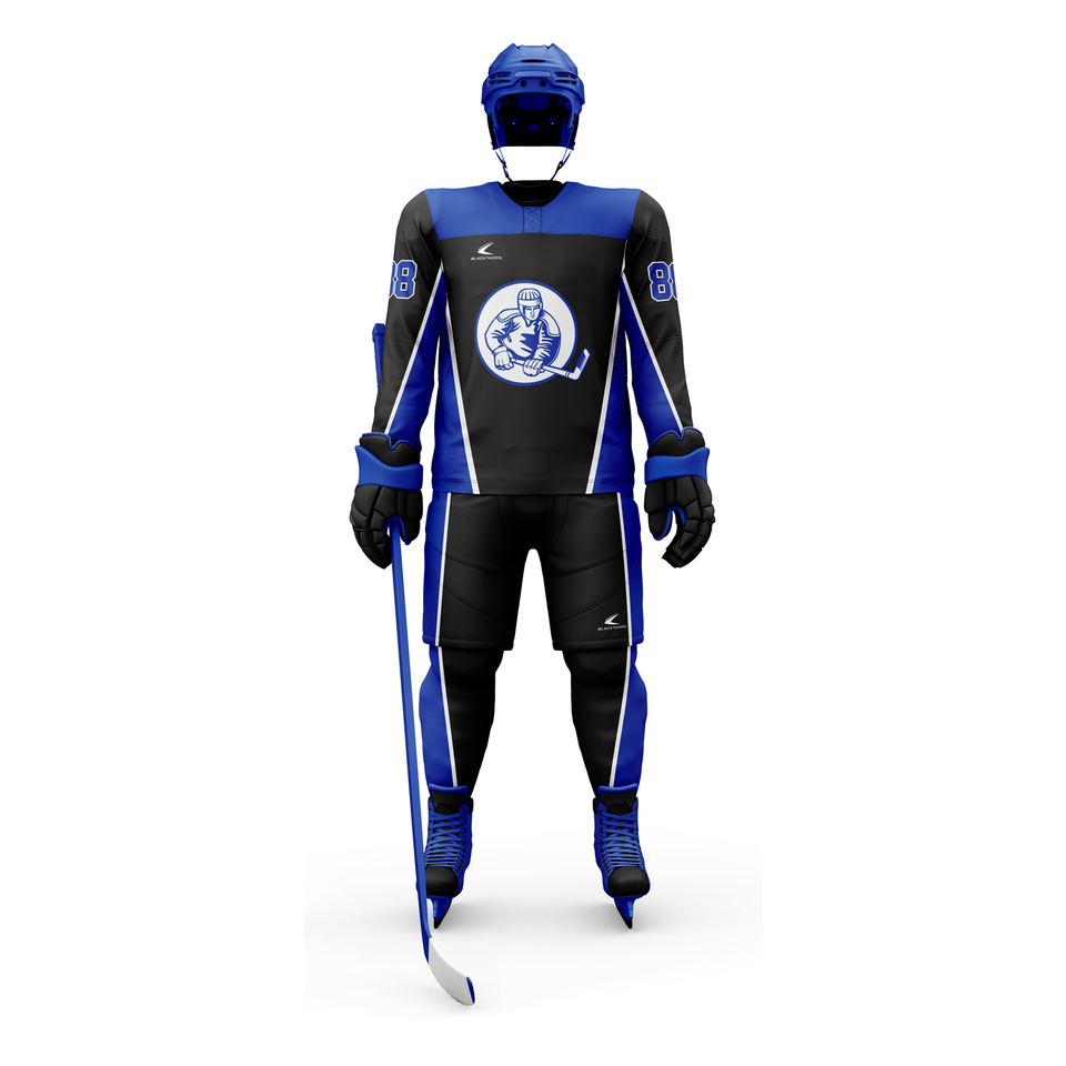 ชุดยูนิฟอร์มฮอกกี้น้ำแข็งสำหรับผู้ใหญ่ OEM ODM ระบายอากาศได้ดี แบบกำหนดเอง พร้อมกางเกงขาสั้นและถุงเท้า ผ้าโพลีเอสเตอร์ 280 GSM