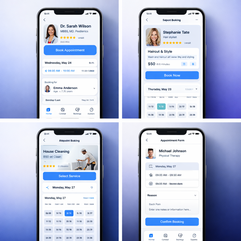 แอปพลิเคชันมือถือสำหรับการจองนัดหมายขั้นสูง พร้อมแผงควบคุมสำหรับผู้ดูแลระบบ สำหรับการเชื่อมต่อปฏิทิน การแจ้งเตือน และการจัดการผู้ใช้