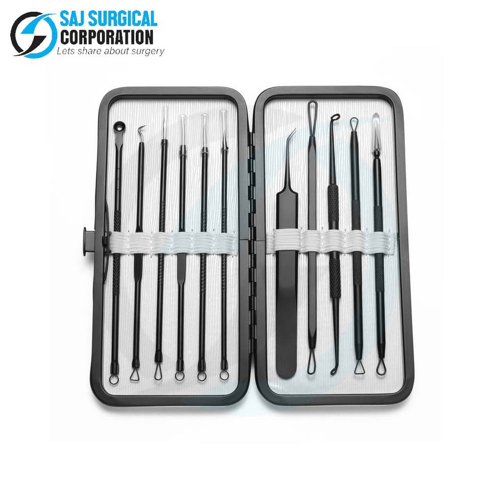 ชุดเครื่องมือกำจัดสิวหัวดำขั้นสูงชุดละ11ชิ้นพร้อมแปรงขัดผิวโลหะ