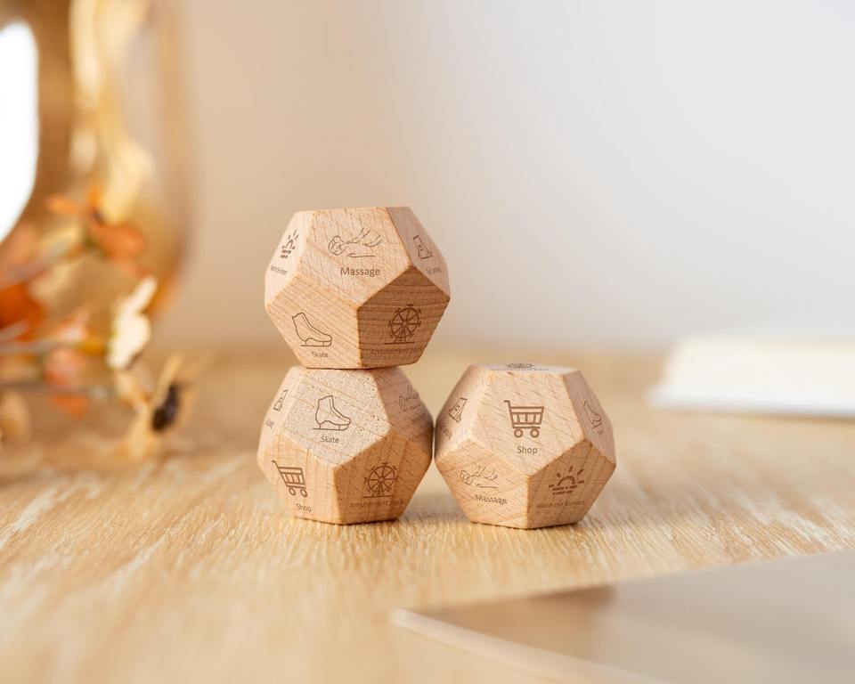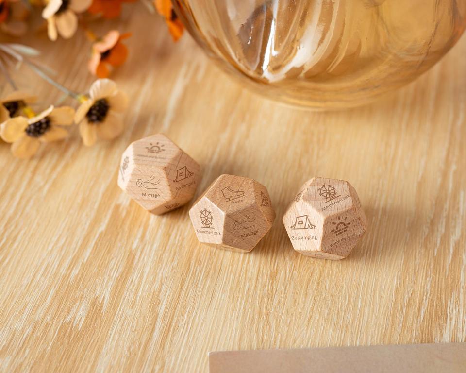 ลูกเต๋าไม้แกะสลักขั้นสูง ลูกเต๋าไม้หลายเหลี่ยมความแม่นยำสูง สำหรับเกมเล่นตามบทบาท DND อุปกรณ์เกมบนโต๊ะ