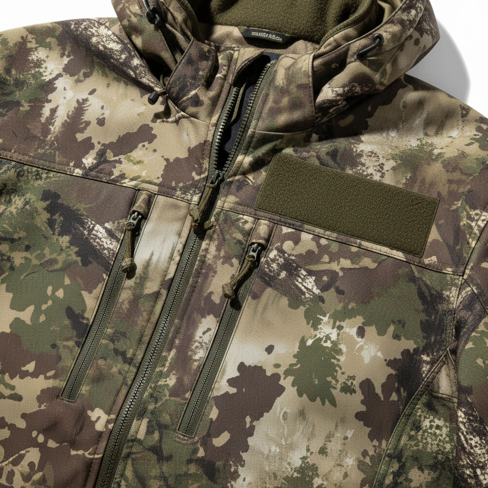 เสื้อแจ็คเก็ตใยสังเคราะห์ขั้นสูง กันน้ำ ระบายอากาศได้ดี เทคโนโลยีลดเสียงรบกวน ลายพราง สำหรับซัพพลายเออร์ตลาดโลก