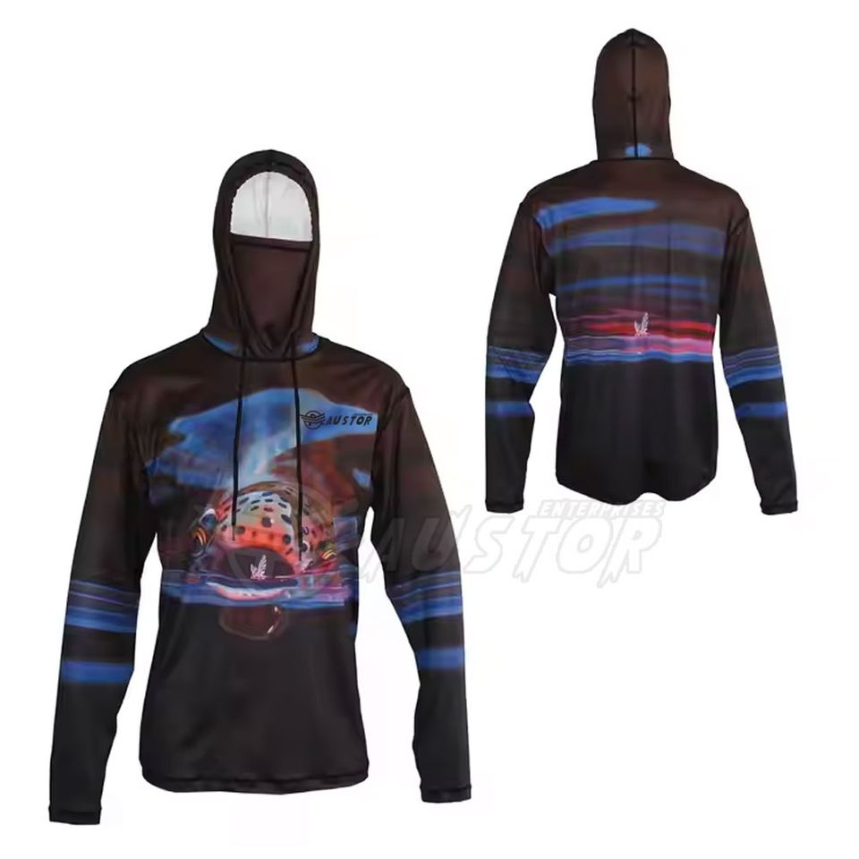 เสื้อฮู้ดตกปลาแบบยูนิเซ็กซ์ น้ำหนักเบา โพลีเอสเตอร์ 100% ป้องกันรังสียูวี 50+ แห้งเร็ว กันลม ระบายอากาศ ป้องกันแบคทีเรีย ไซส์ใหญ่