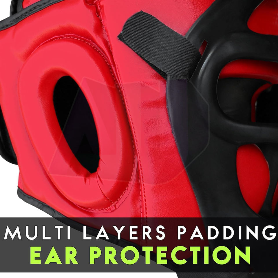 หมวกกันน็อคหนังคุณภาพสูงสำหรับฝึกซ้อมในยิม ออกแบบมาเพื่อความปลอดภัยในการฝึกซ้อม พร้อมแผ่นรองรับที่นุ่มสบาย กระชับพอดี