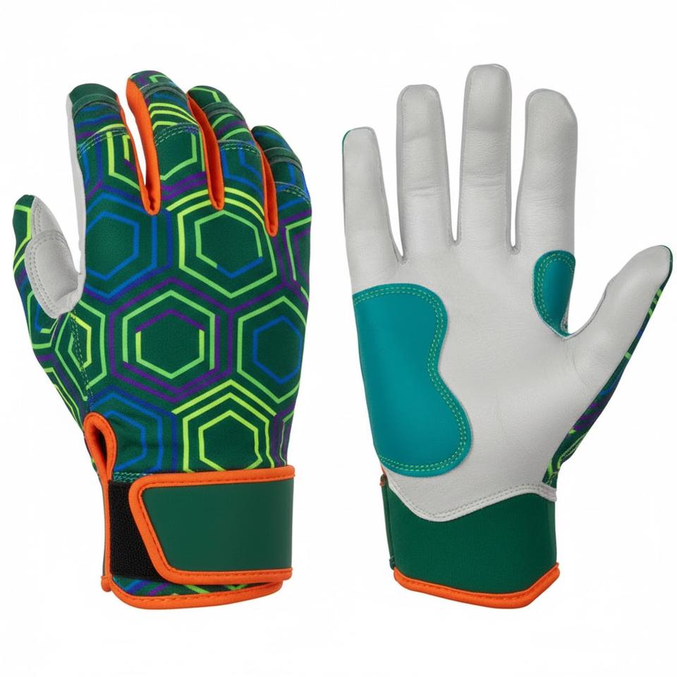 ถุงมือตีลูกเบสบอลแบบไฮบริดขั้นสูง - ฝ่ามือทำจากหนังแพะที่ทนทานและผ้าที่ยืดได้ 4 ทิศทางเพื่อความสบายของนักกีฬามืออาชีพ