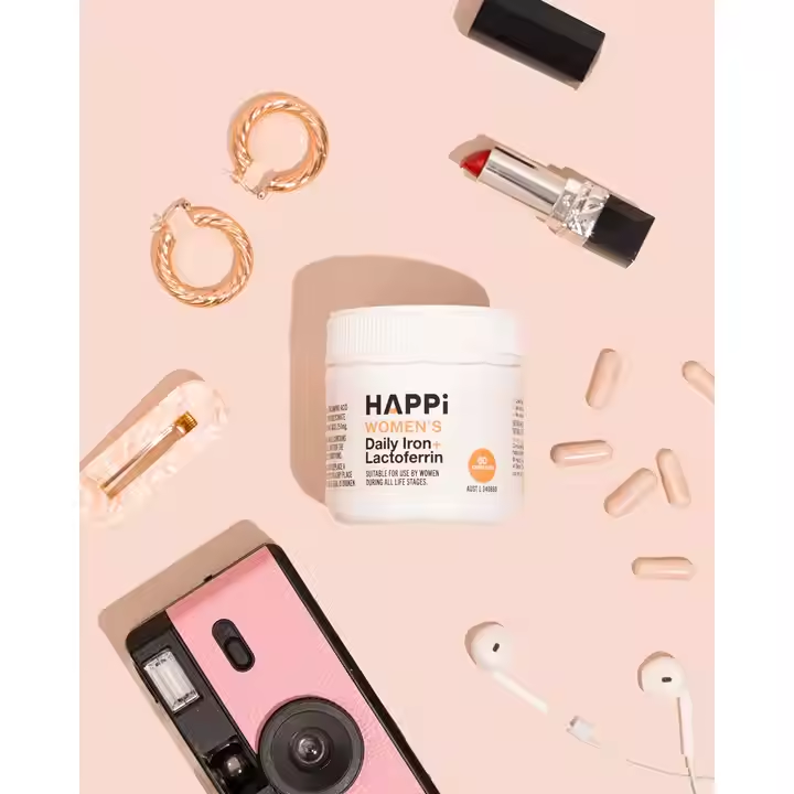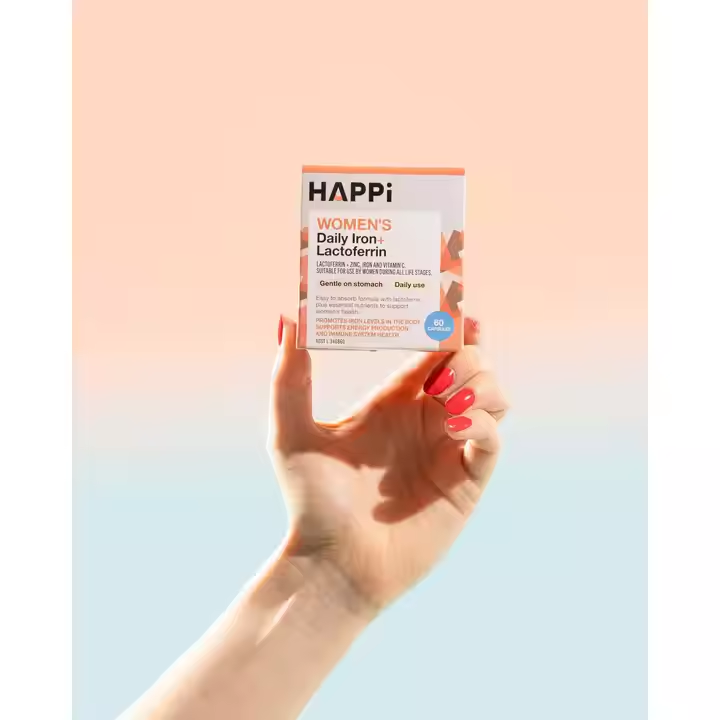ผลิตภัณฑ์เสริมธาตุเหล็กเสริมแลคโตเฟอรินสำหรับผู้หญิงขั้นสูง happi สูตรเพื่อสุขภาพประจำวัน
