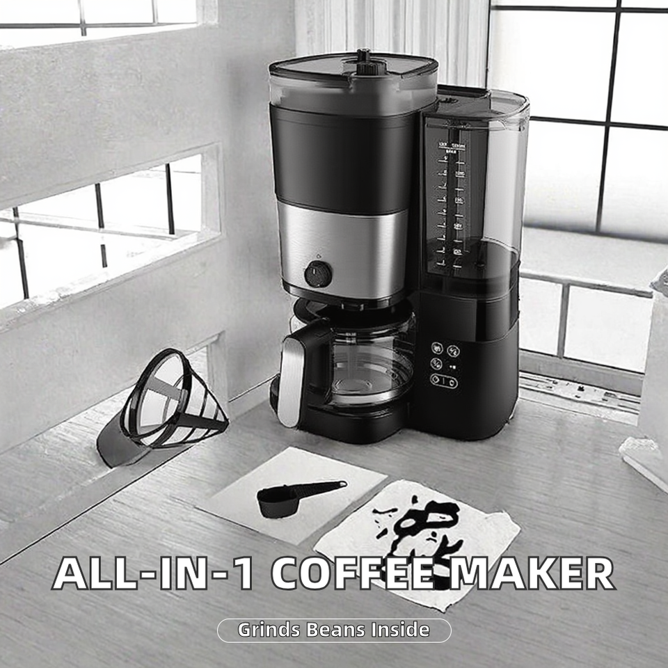 เครื่องชงกาแฟสเตนเลสสตีลขั้นสูงพร้อมเครื่องบดในตัว ระบบชงกาแฟแบบหยด 10 ถ้วย แบบถาวร