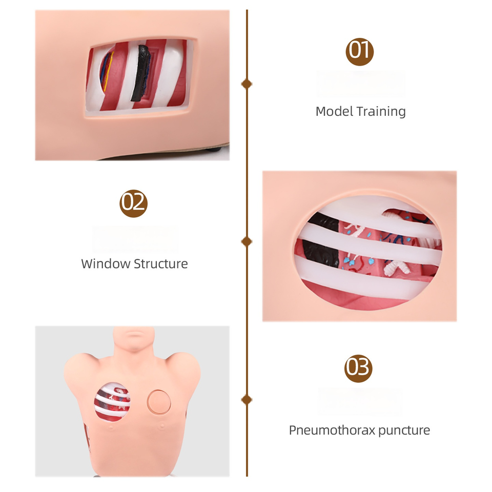 แบบจำลองฝึกหัดการเจาะและระบายน้ำในช่องท้องทรวงอกขั้นสูง - เครื่องจำลองภาวะเลือดและอากาศอุดตันในทรวงอกสำหรับการฝึกอบรมฉุกเฉินทางการแพทย์