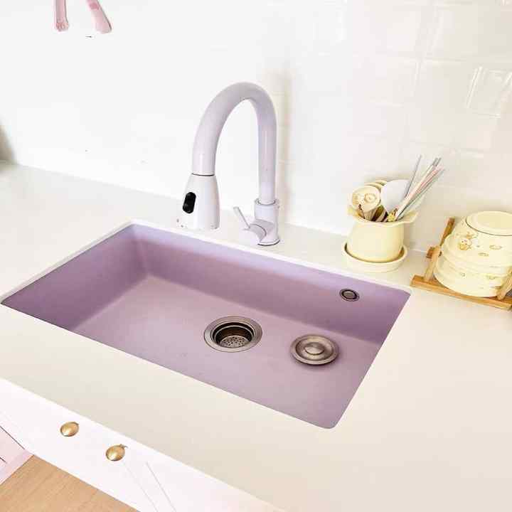 ชุดก๊อกน้ำร้อนน้ำเย็นแบบฝังใต้เคาน์เตอร์สำหรับอ่างล้างจานในครัว สีม่วงอ่อน รุ่นพรีเมียม