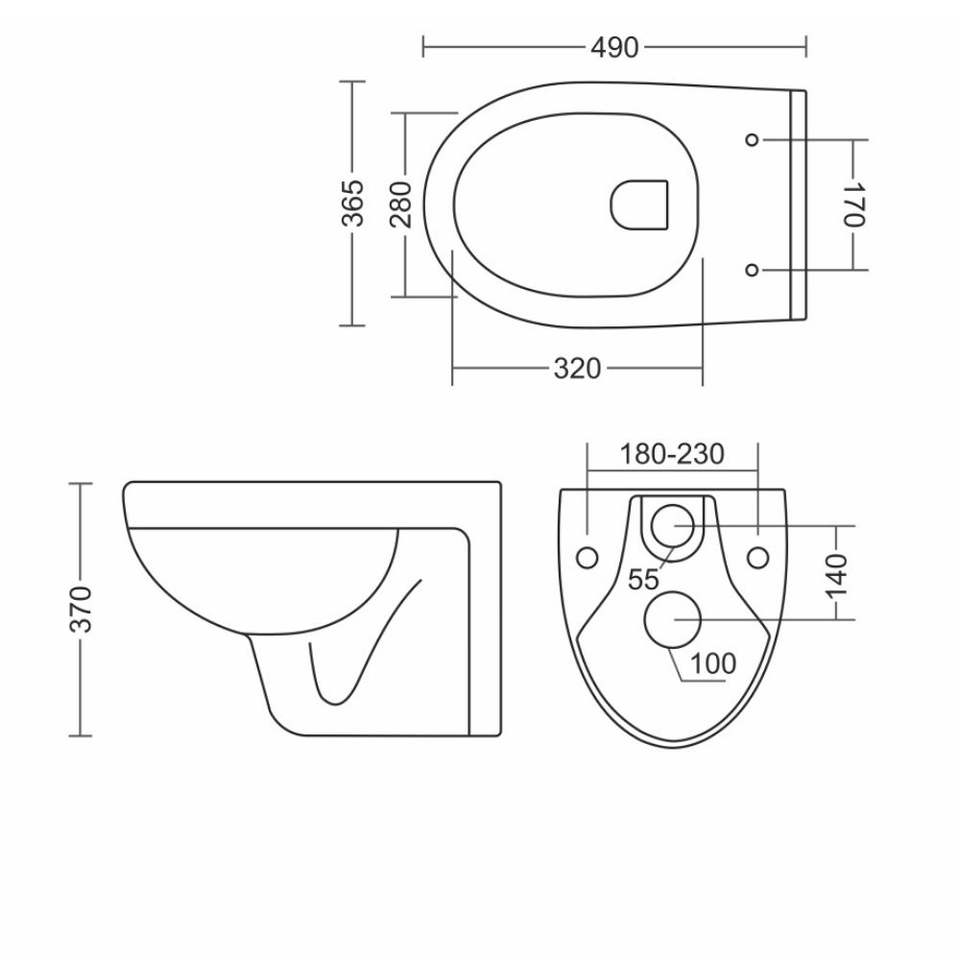 โถสุขภัณฑ์แบบแขวนผนังรุ่นซิกมาทันสมัย ขนาด 490x365x370 มม. ผลิตจากเซรามิก สำหรับใช้ในห้องน้ำเชิงพาณิชย์