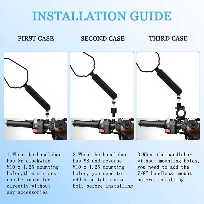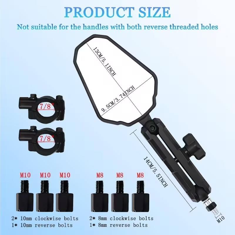 กระจกมองข้างมอเตอร์ไซค์แบบพับได้ สำหรับรถมอเตอร์ไซค์และรถเอทีวี ขนาด 10 มม. 8 มม. พร้อมสกรูยึดและแฮนด์จับขนาด 78 มม. สำหรับรถ ATV และ ADV
