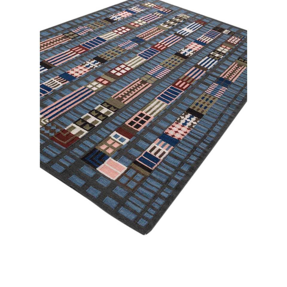 พรมขนสัตว์ลายเรขาคณิตแบบนามธรรม Adwl-13263 สีเทา-ดำ ทอแบบเรียบ สำหรับห้องนั่งเล่น พรมปูพื้นรูปสี่เหลี่ยมผืนผ้าสำหรับตกแต่งบ้าน