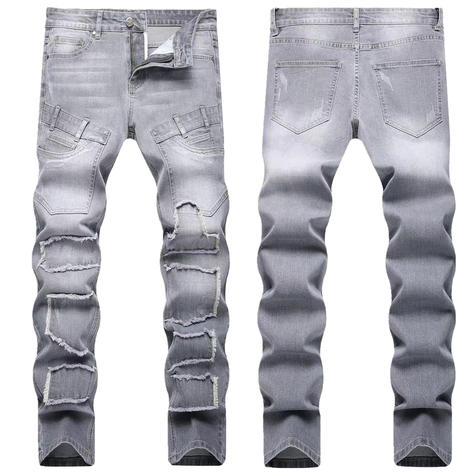 เอี๊ยดีนิม ขายส่ง กางเกงยีนส์ขาดแต่งโลโก้ตามสั่ง ทรงสลิม ขาเดฟ รูใหญ่ กางเกงผู้ชายทรงปกติ กางเกงยีนส์ขาดสำหรับผู้ชาย รุ่น P