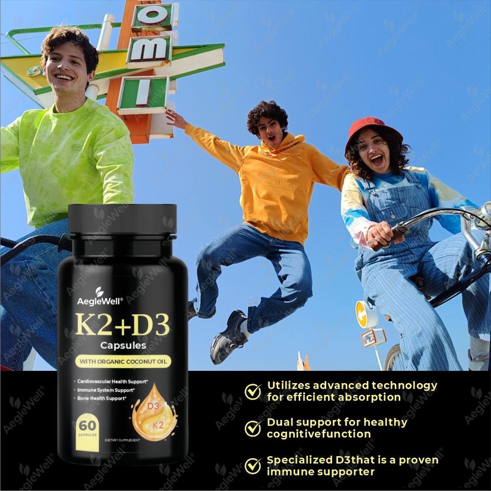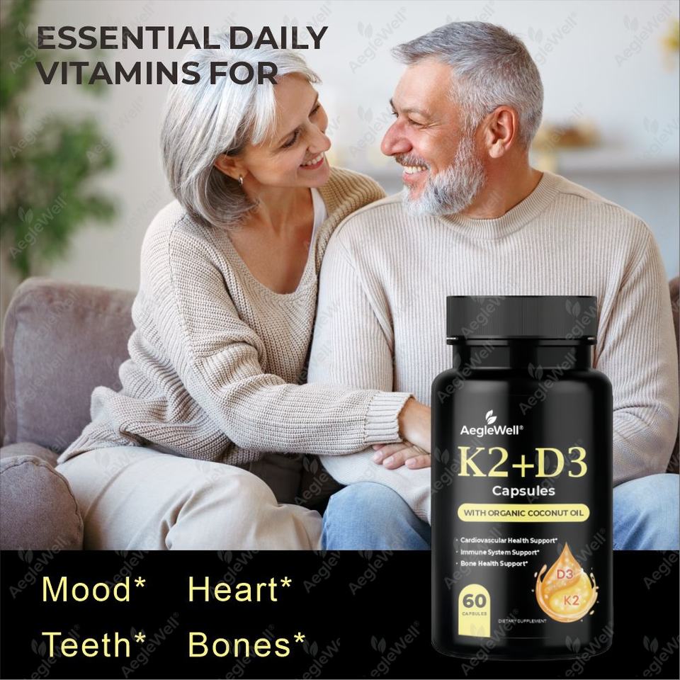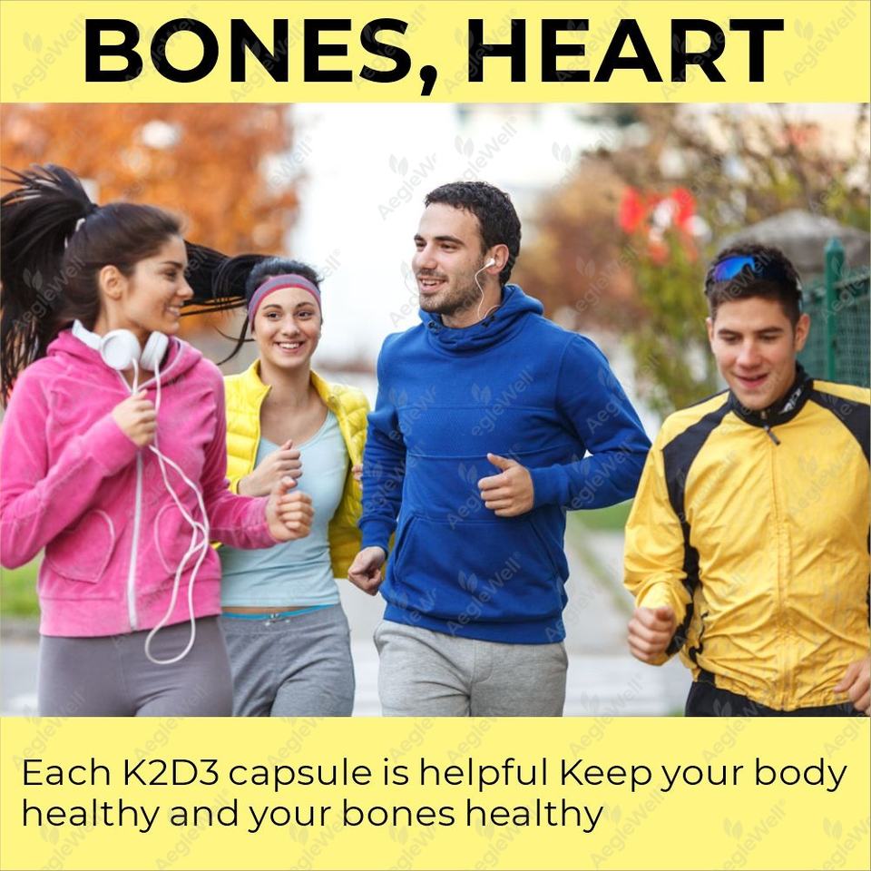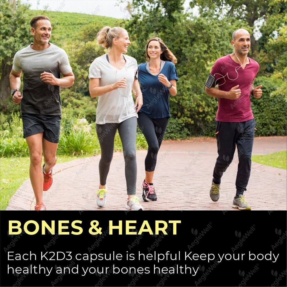 K2วิตามิน aeglewell พร้อมอาหารเสริม D3สูตร Non-GMO กลืนง่ายและ D & K Complex 60แคปซูลรองรับกระดูกและหัวใจ