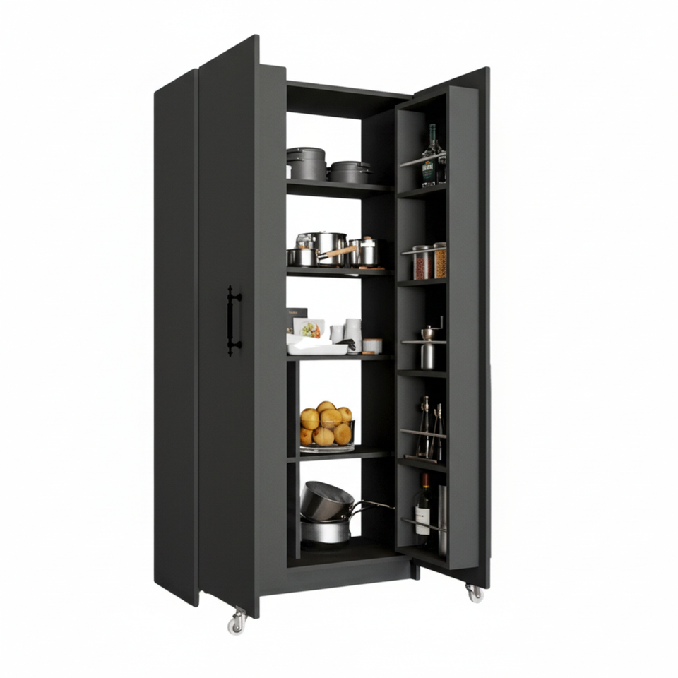 ตู้เก็บของอเนกประสงค์ในครัว Aeka VEZIR รุ่นไม้แอนทราไซต์ 15 ชั้น ประกอบง่าย เป็นมิตรกับสิ่งแวดล้อม ดีไซน์หรูหราทันสมัย