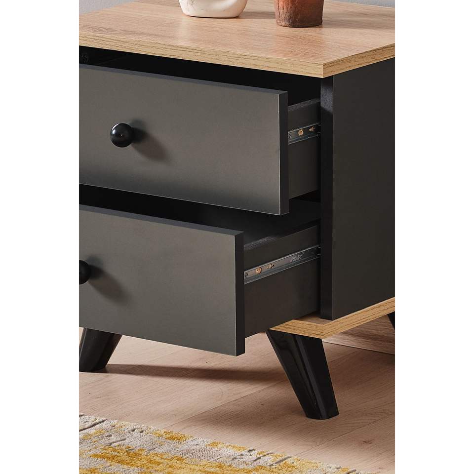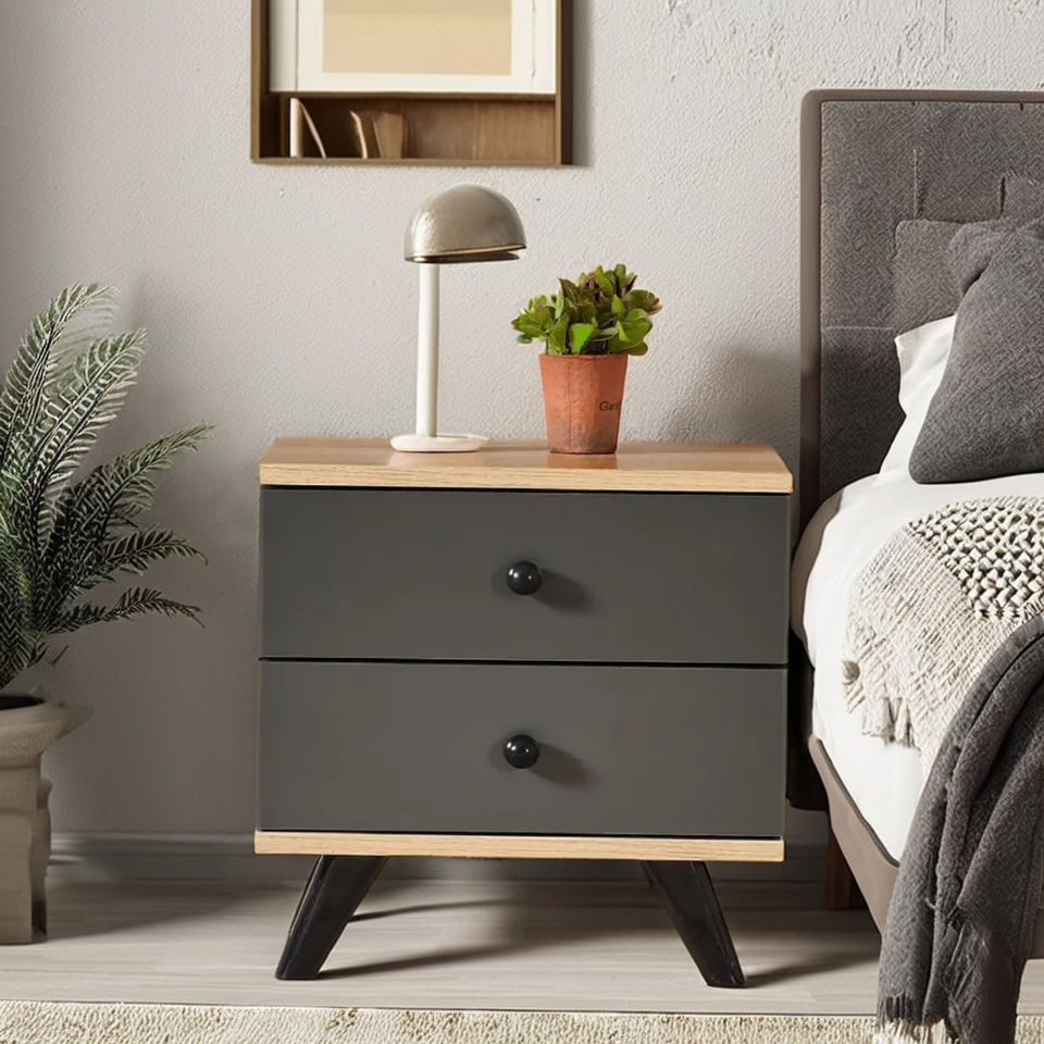 โต๊ะข้างเตียง AekaOnline สีเทาแอนทราไซต์ทันสมัย 2 ลิ้นชัก สไตล์มินิมอลหรูหราแบบนอร์ดิก เป็นมิตรกับสิ่งแวดล้อม เหมาะสำหรับอพาร์ทเมนต์