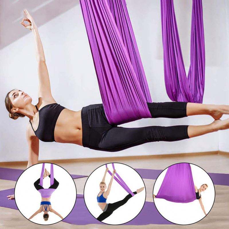 เปลญวนโยคะทางอากาศชุดเปลญวนไนลอนสำหรับออกกำลังกายฟิตเนสต้านแรงโน้มถ่วงอากาศที่แกว่งไปมาสำหรับการปั่นออกกำลังกายพิลาทิสยิมนาสติก