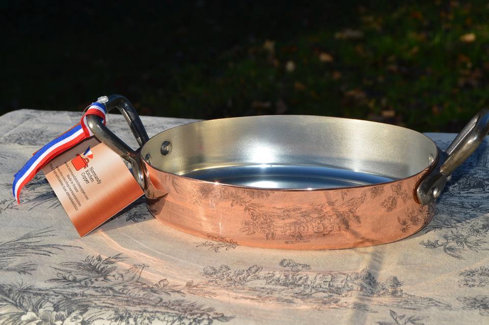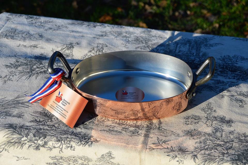 กระทะซอสโลหะรูปทรงกลมพร้อมที่จับโลหะสวยงามเครื่องใช้ในครัวโรงแรมทำจากทองแดงสีโรสโกลด์