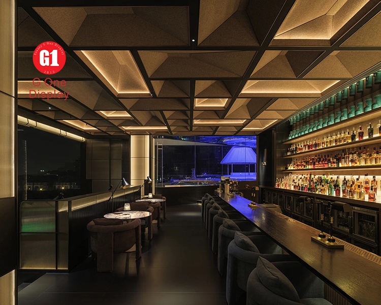ตู้โชว์บาร์หรูหราทันสมัยสำหรับผับ ไนต์คลับ พร้อมไฟ LED ดีไซน์ตกแต่งบาร์แบบกำหนดเอง
