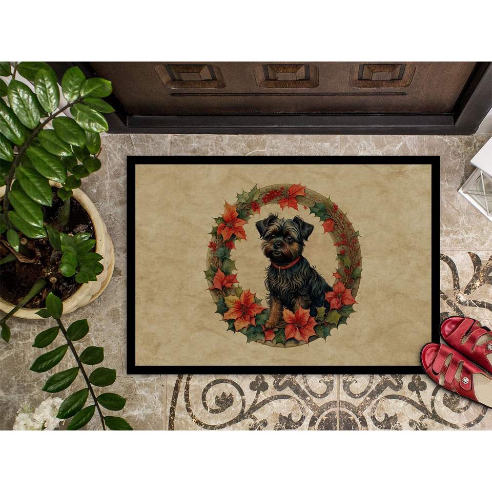 Affenpinscher Christmas Flowers Doormat New 18H X 27W Indoor Outdoor Non-Slip Low Pile Rug for Entryway Washable and Non-Slip