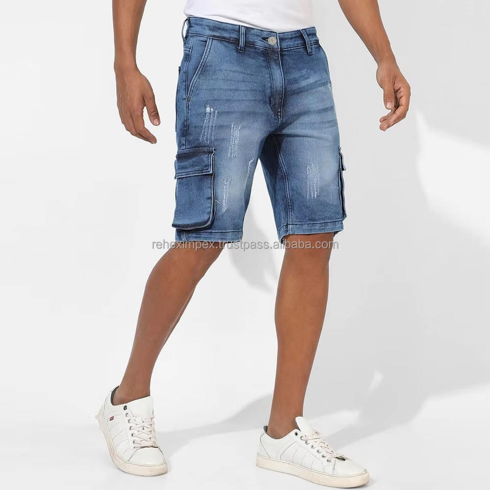 กางเกงขาสั้นผ้ายีนส์สำหรับผู้ชายแบบแห้งเร็วสไตล์อินเทรนด์ลุคคลาสสิกสั่งทำได้