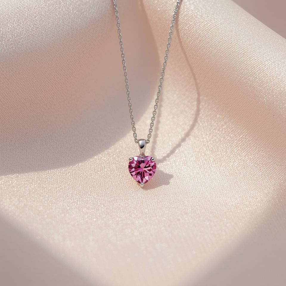 เครื่องประดับที่ดีราคาไม่แพงสำหรับผู้หญิง9K สร้อยคอจี้แซฟไฟร์สีชมพูหัวใจสีทองสีขาว | ประเทศไทย