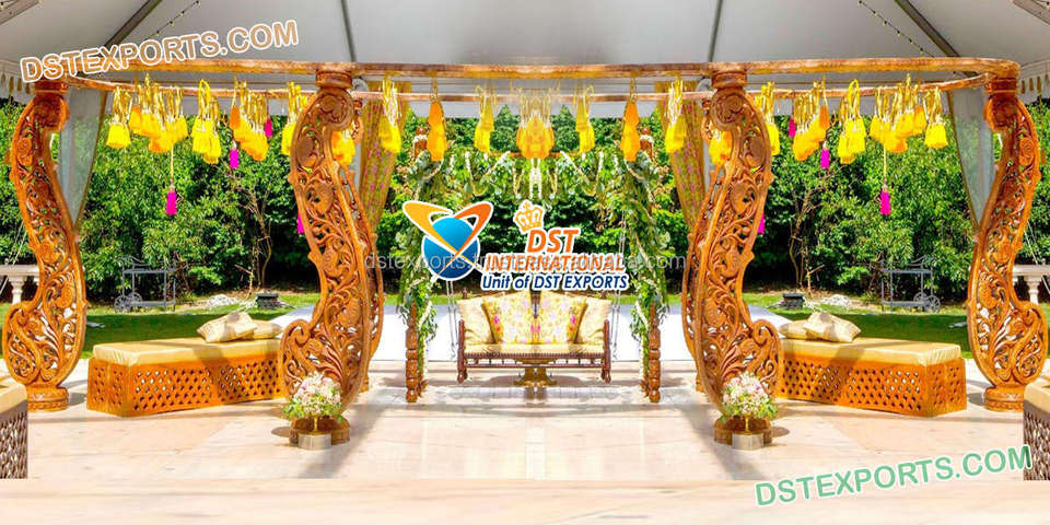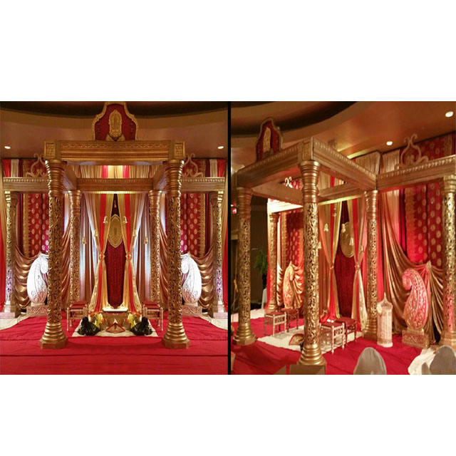 มณฑปงานแต่งงานสีทองสำหรับขาย - ดีไซน์ทรงสี่เหลี่ยมสุดพิเศษพร้อมเสา FRP โดดเด่น โครงสร้างทันสมัยน้ำหนักเบา