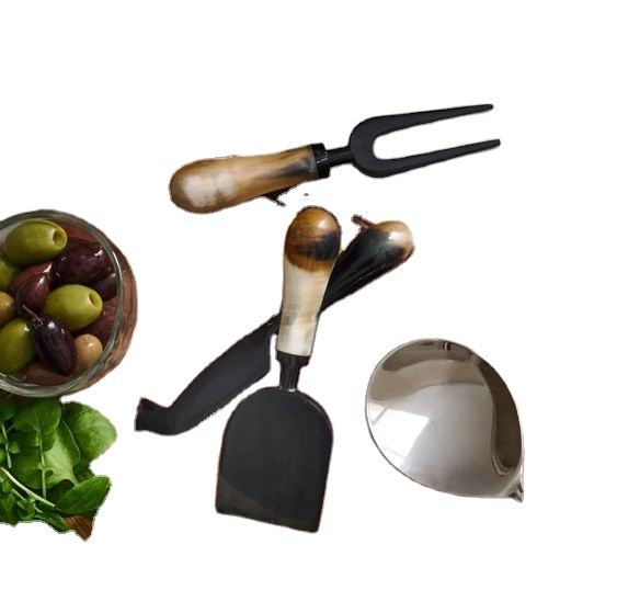 การออกแบบล่าสุดที่ราคาไม่แพงชุดชีสคอควายทําด้วยมือพร้อมที่จับแตรเครื่องตัดชีสพร้อมชุดชีสขนาดรูปร่างที่กําหนดเอง