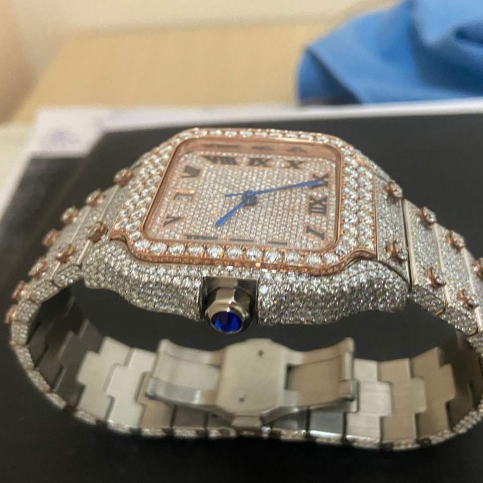 ชื่อผลิตภัณฑ์:นาฬิกา Moissanite VVS ประดับเพชร, ผ่านการทดสอบด้วยเครื่องตรวจเพชร
