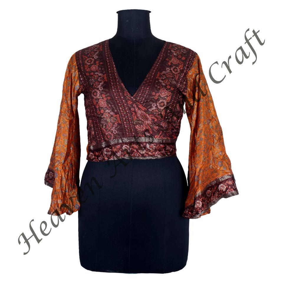Recycle Sari Silk Tie Tops Bell Sleeves