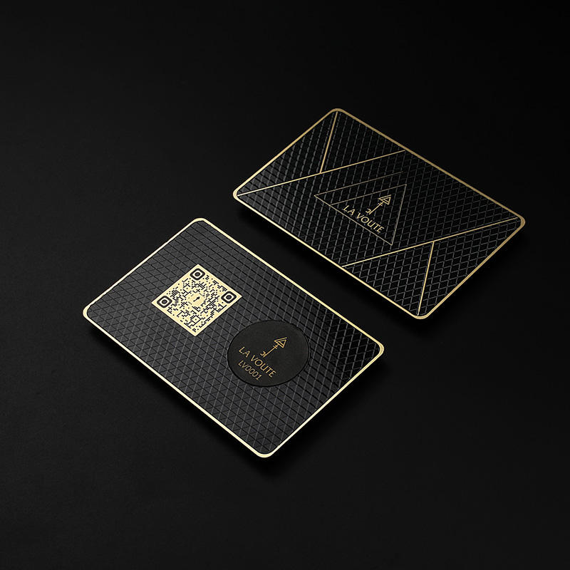 นามบัตรโลหะ NFC สีดำด้านสลักด้วยเลเซอร์โลโก้แบรนด์ส่วนบุคคลราคาไม่แพง