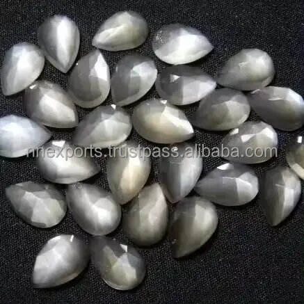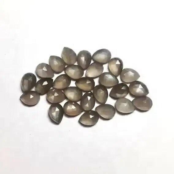 พลอยมูนสโตนสีเทาธรรมชาติขนาด 8x12 มม. รูปทรงหยดน้ำแบบโรสคัท คาโบชอง พลอยกึ่งมีค่าแบบพิเศษ สำหรับทำเครื่องประดับเงินและทอง