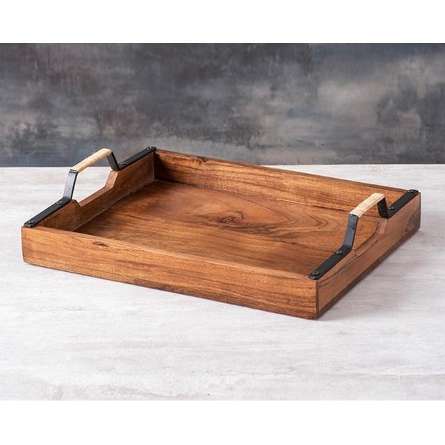 ถาดไม้อะคาเซียชั้นเดียว ราคาประหยัด สำหรับเสิร์ฟอาหาร จัดเก็บอาหาร ใช้ในบ้าน โรงแรม ร้านอาหาร อุปกรณ์ครัว ถาดชา กาแฟ