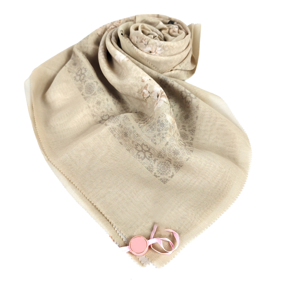 Nara ชุดฮิญาบสีเบจชุดเสื้อผ้าผ้าพันคอแขนสั้นผ้าฝ้ายลำลองสไตล์ชาติพันธุ์สำหรับผู้หญิงมุสลิมฤดูใบไม้ผลิสำหรับผู้ใหญ่