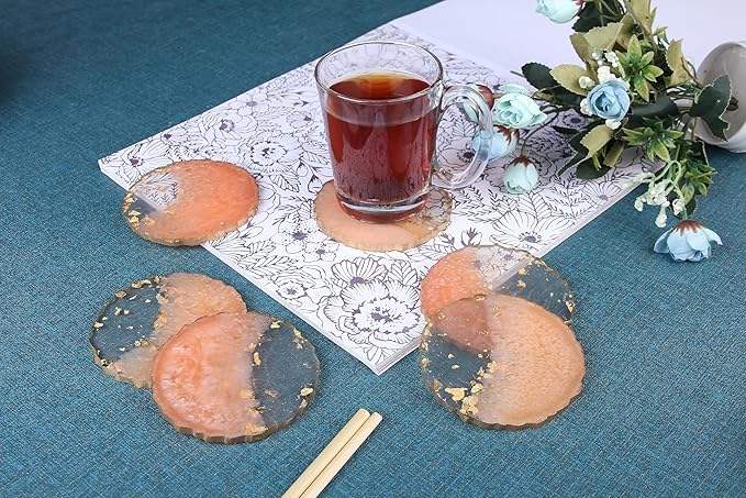 ที่รองแก้วเรซิ่นสุดหรู ทำด้วยมือ เป็นมิตรกับสิ่งแวดล้อม สไตล์โบฮีเมียน ออกแบบได้ตามต้องการ คุณภาพระดับไฮเอนด์ สำหรับโต๊ะทำงานที่บ้านและสำนักงาน จากอินเดีย