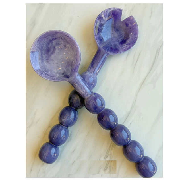 ชุดช้อนสลัดเรซิ่นราคาประหยัด ภาชนะใส่อาหารสีขาวลายวน ช้อนเสิร์ฟเรซิ่น อุปกรณ์ครัว ของตกแต่งโต๊ะอาหาร