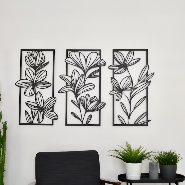 ชุดของตกแต่งผนังเคลือบด้วยผงสีขาวสีดำสองชิ้นศิลปะผนังใบไม้ศิลปะการตกแต่งภายในกิ่งไม้โลหะศิลปะผนัง