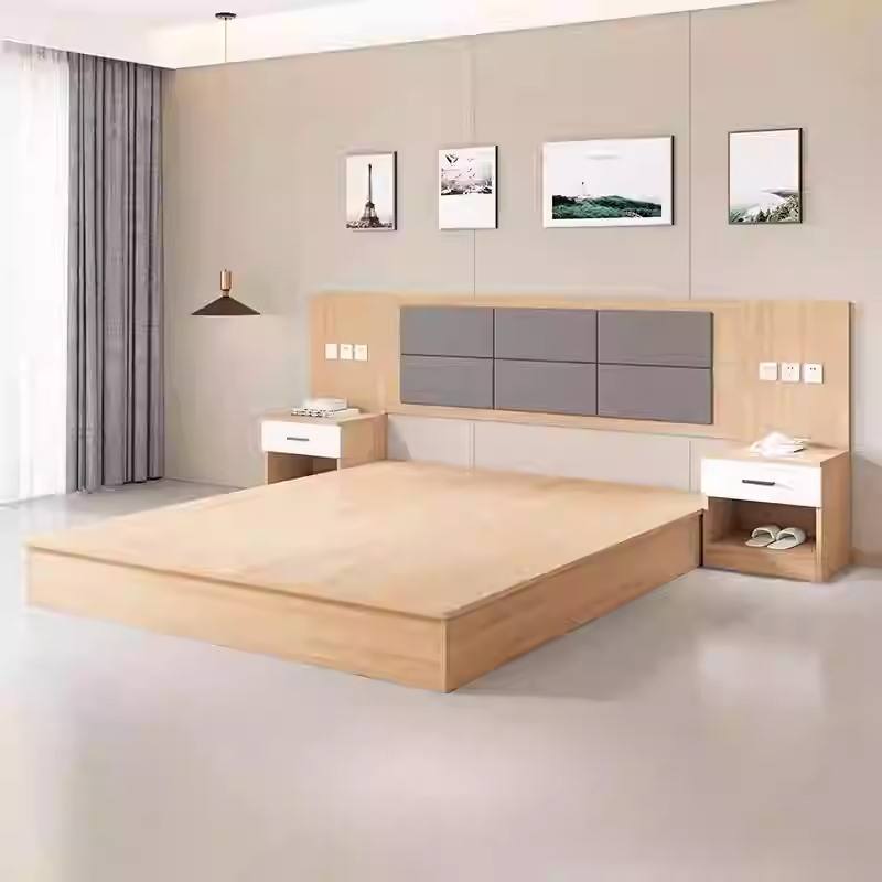 ชุดเฟอร์นิเจอร์ห้องนอน3ดาวสำหรับโรงแรมอพาร์ทเมนท์ทำจากไม้จริงเตียงคู่ทำจากไม้เนื้อแข็งทนทาน